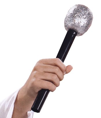 Now you can sing like The King! This Elvis Microphone is a must have accessory for your Elvis Presley costume. This microphone toy has a black plastic handle and a silver glitter mic.-