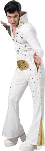 If you enjoy historical reenactments or belong to a theater group and need a great costume that can withstand excessive wearing then this costume is just for you. Made domestically in the USA these costumes have never been returned for quality or sizing issues. Buy with confidence knowing your play that features the later years of "The King" will look incredible in this Elvis costume for men. Sizing: Chest: 48" Waist: 42" Neck: 17.5" Sleeve: 36" Inseam: 32.5"